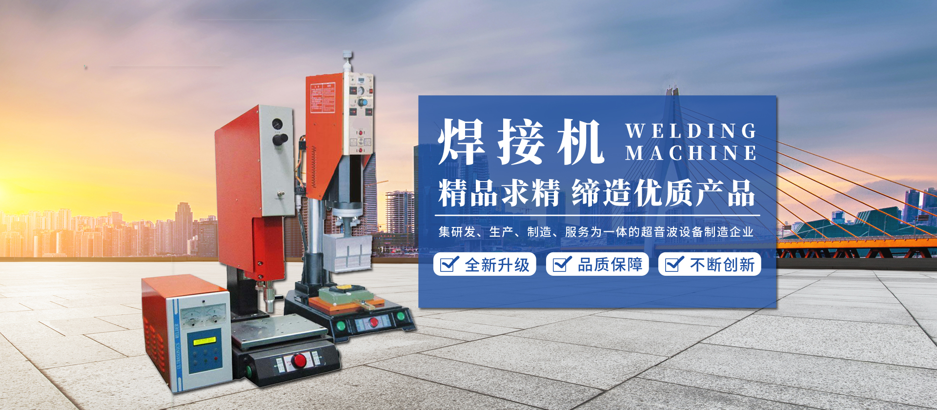 其中產(chǎn)品包括超聲波塑料熔接機(jī),超聲波清洗機(jī),超聲波花邊機(jī),超聲波手術(shù)衣專用機(jī),超聲波手焊機(jī),熱板機(jī),熱熔機(jī),旋熔機(jī),震動摩擦焊接機(jī),超聲波金屬點(diǎn)焊機(jī),高頻機(jī),高頻誘導(dǎo)焊接機(jī),內(nèi)植阻抗焊接機(jī),紅外線焊接機(jī),激光焊接機(jī),微波焊接機(jī)等等塑料焊接設(shè)備的生產(chǎn)開發(fā)、銷售及維修服務(wù),并為客戶設(shè)計自動化清洗機(jī)線,設(shè)計制作超聲波、高周波模具,及超聲波產(chǎn)品焊接代工。